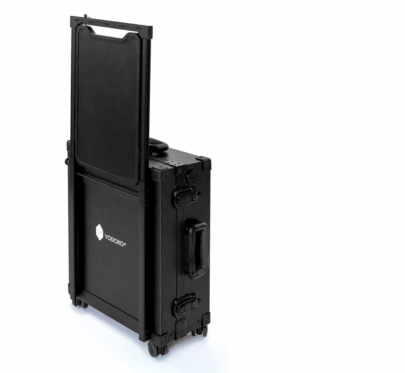 かばんの3辺の合計が158cmまでは多くのエアラインで一般的な預け入れ手荷物のサイズです。 左右に100度まで開き、安定した作業スペースを確保します。スーツケース内のヒンジにマジックアームを装着できます。